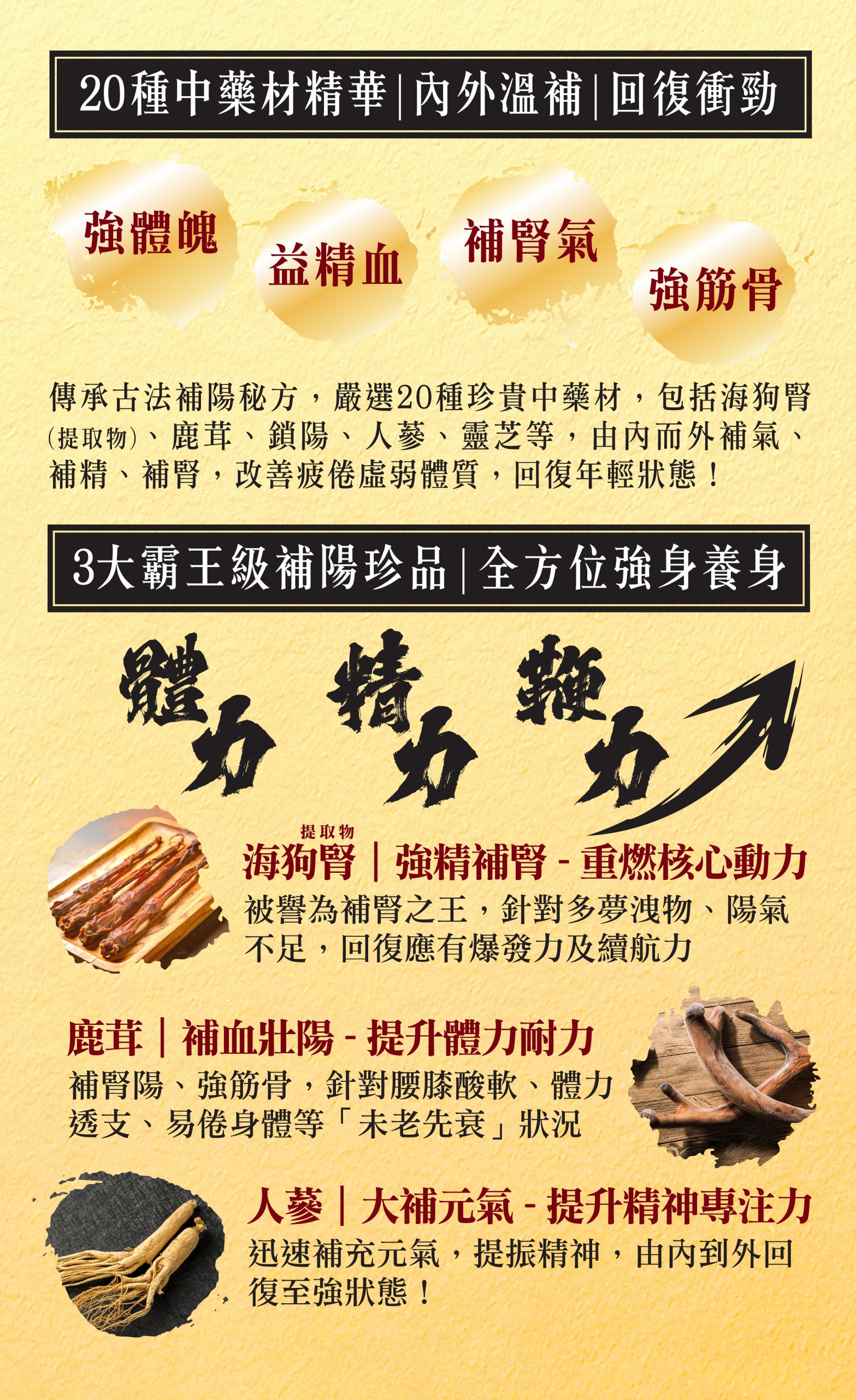 - 壯陽補腎:溫補腎陽,從根本改善男性性能力下降問題