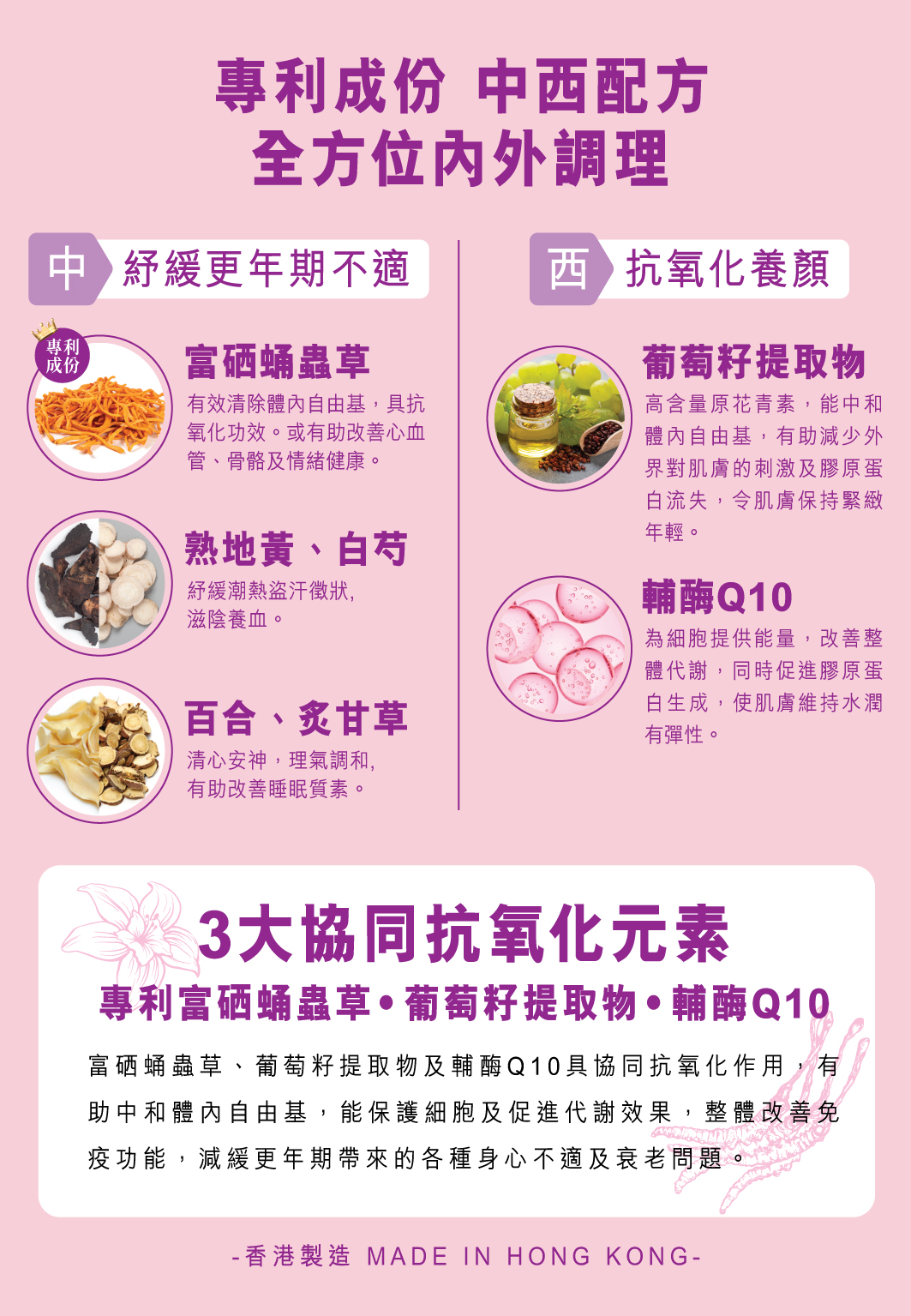 植物提取物 (熟地黃、白芍、山茱萸、女貞子、牡丹皮、陳皮、甘草(炙)、百 合、茯苓)