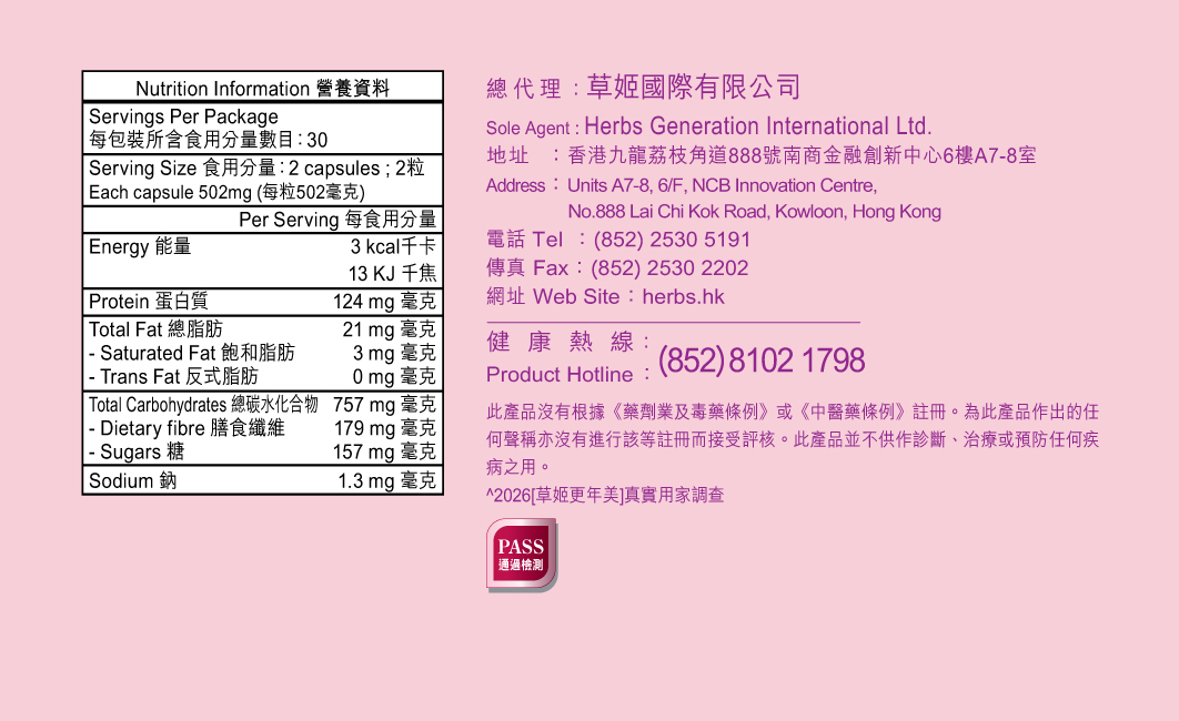 此產品沒有根據《藥劑業及毒藥 條例》或《中醫藥條例》註冊。為此產品作出的任何聲稱亦沒有進行該等註冊而接受評核。 此產品並不供作診斷、治療或預防任何疾病之用。