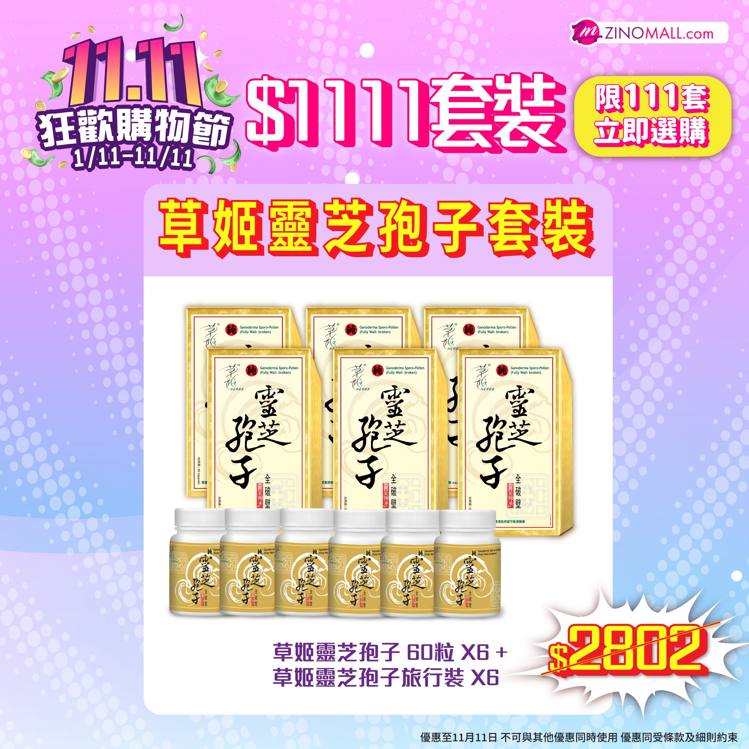 1.草姬靈芝孢子套裝 (內含草姬靈芝孢子6盒 再送同款旅行裝x6)