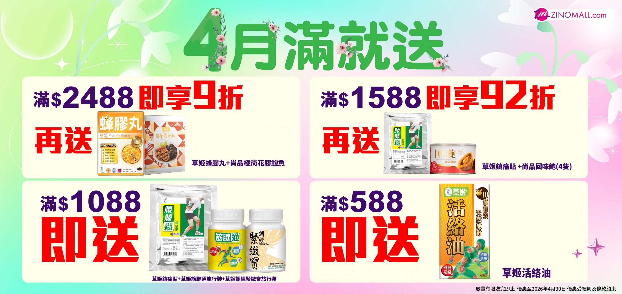 * 數量有限送完即止 優惠至4月30日 優惠受細則及條款約束